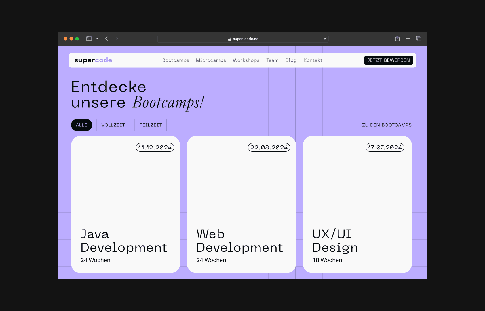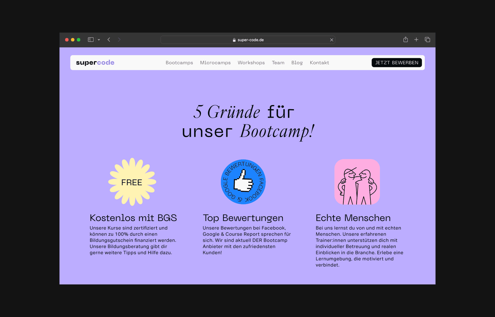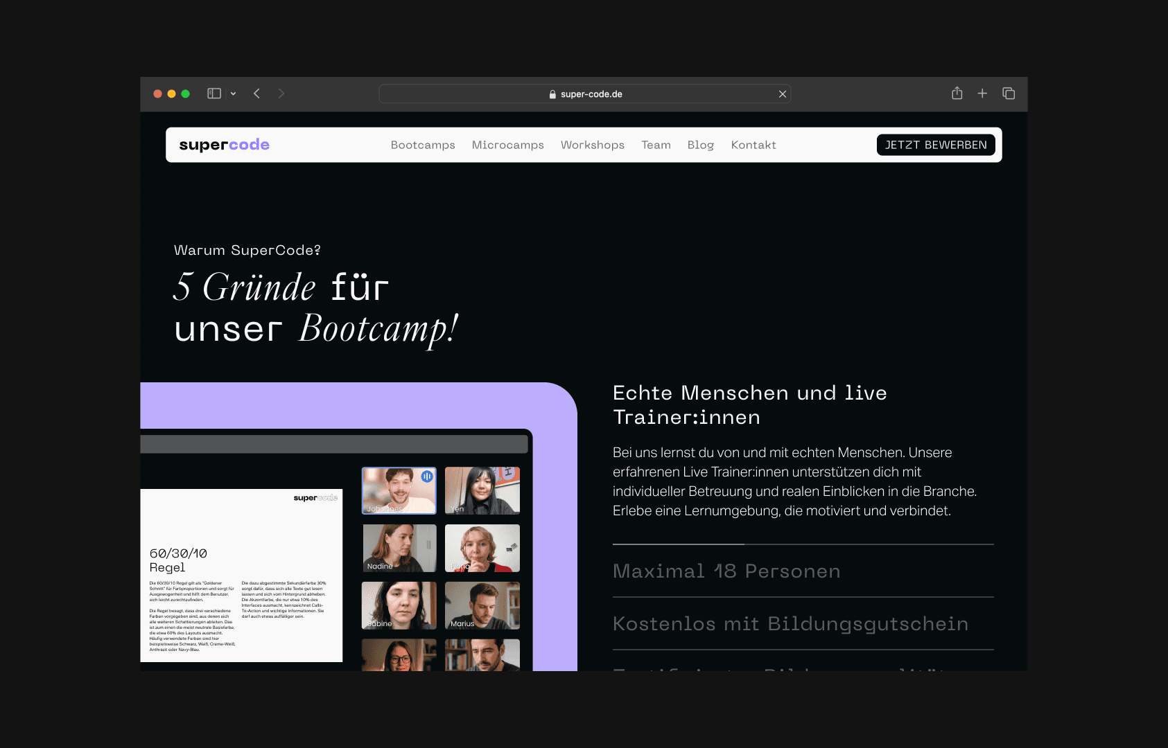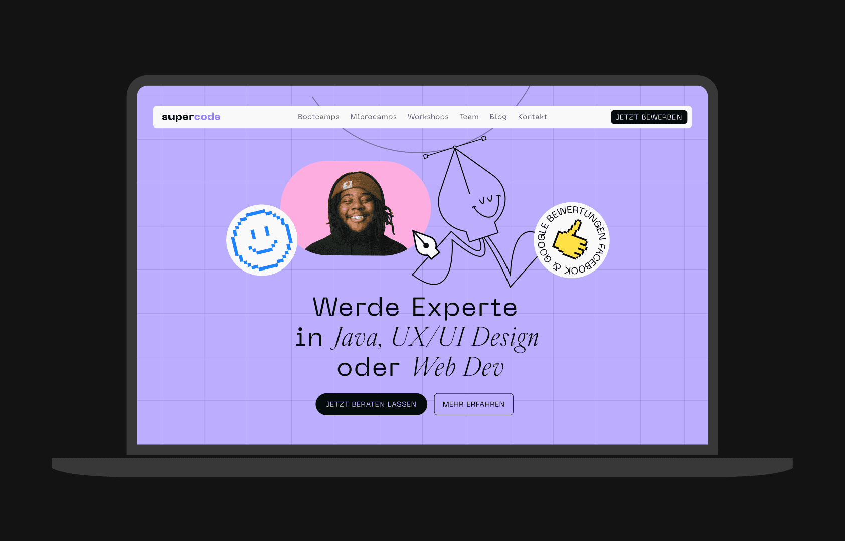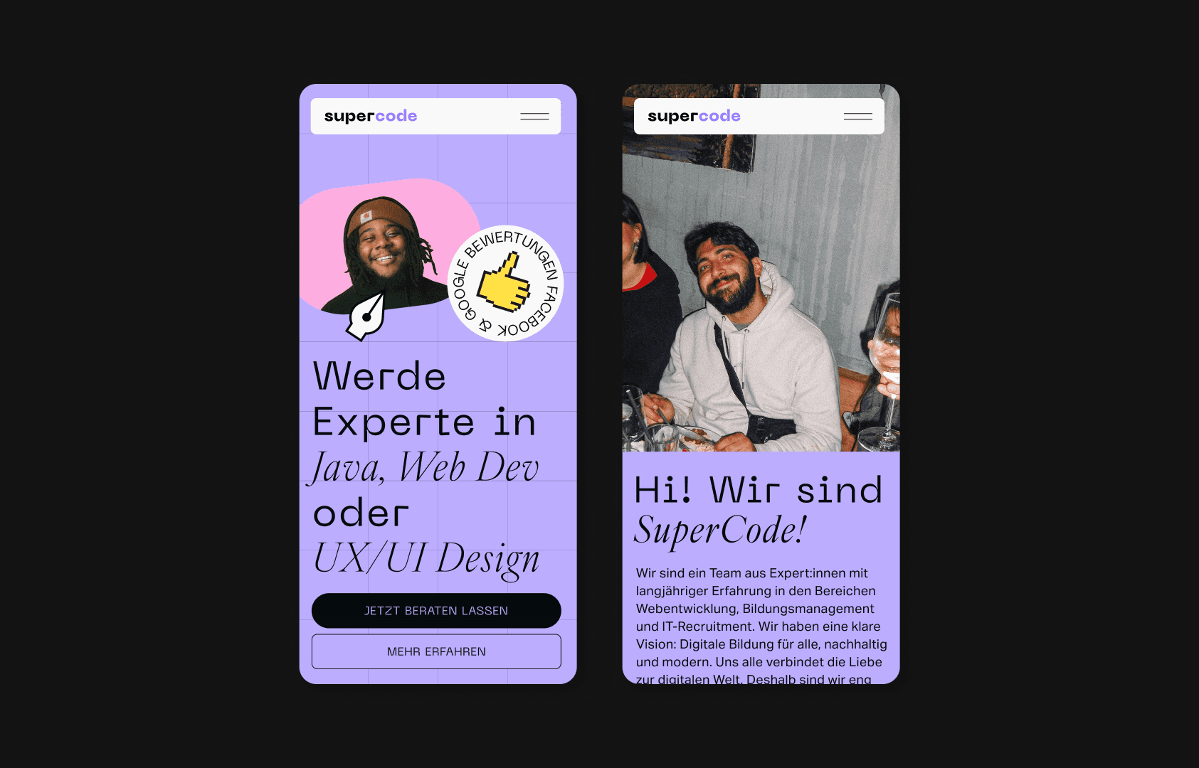 At SuperCode, I was responsible for the creative direction alongside my role as main UX/UI trainer. My work focused on developing a more modern and cohesive brand experience to improve engagement and increase conversions for educational consultations.